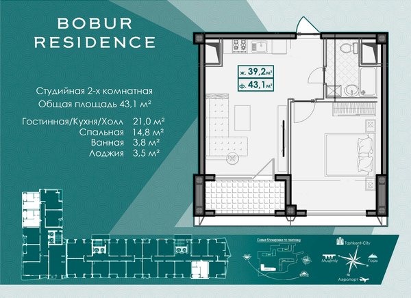 «Бизнес-класс | 2 комнаты | 43.1 м² | с ремонтом | ЖК BOBUR RESIDENCE» ЖК “BOBUR RESIDENCE” Адрес: ул. Бобура, 73 - Яккасарайский район Ориентир: за банкетным залом "YAKKA SAROY" 1 дом - 9 этаж (из 16 этажей) студийная 2х-комнатная квартира Площадь: фактическая - 43,1 м² Планировка: 1 спальня Гостиная / кухня 1 санузел Состояние: С ремонтом (без мебели) подведён газ установлен газовый 2х контурный котёл О комплексе: бизнес-класс парковка: -1 и 1 этажи прогулочная и детская зона на уровне 2 этажа (стилобат) Юридически: переуступка договора нотариальное оформление Телефон: +998 90 351 16 15 Если не отвечаю - пишите в Telegram
