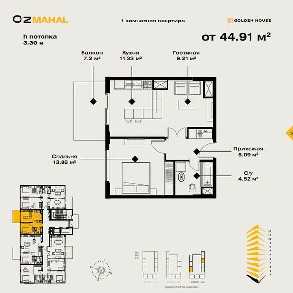 ЖК «Oz Mahal» Евро Люкс 2/8/14 Продаётся квартира Новостройка Мирзо-Улугбекский район Дархан Ориентир: Новомосковская ЖК «Oz Mahal» Комнат: 2 Этаж: 8 Этажность: 14 Площадь: 44 м2 Состояние : Дизайнерский ремонт Цена : 97.000 у.е +998336192222