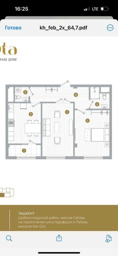 Квартира в премиум комплексе Koh-ota. Кадастр. Продается своя 3-х комнатная квартира(коробка, комнаты разделены,)на 1-м этаже ЖК «Коh Ota» застройщик ИК«Базис-А». Общая площадь по кадастру 77,75 квадратов. Кадастр в наличии. С собственным крытым и огороженным двором в 27,2 квадрата. Отлично подойдет под офис. По планировке 2 санузла. И собственный красивый зеленый дворик. Полностью закрытая от машин детская площадка, современно обустроена, засыпана белым песком. Вход с внутреннего двора (с подъезда ) и с заднего двора ЖК. Парковка :Подземная (в продаже ) и по периметру ЖК( бесплатно) Весь комплекс огорожен стеной. Наружная и внутренняя отделка ЖК из Натурального камня. Адрес: Шайхантахурский р-н, рядом с пересечением улиц Нурафшон /Лабзак. Ориентир мечеть Кох -Ота. Цена : 156.000 у.е. торг уместен . Посредникам, не беспокоить!!! Тел. 909919006