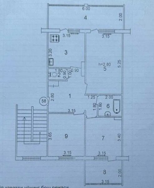 Продаю 3/4/5 Карасу -6 балкон 2*6 Продается квартира 3/4/5 Мирзо улугбекский р-н Карасу-6 Площадь: 74м2, состояние среднее, французкая планировка, балкон 2*6, все раздельно, торцевая Цена: 74.000