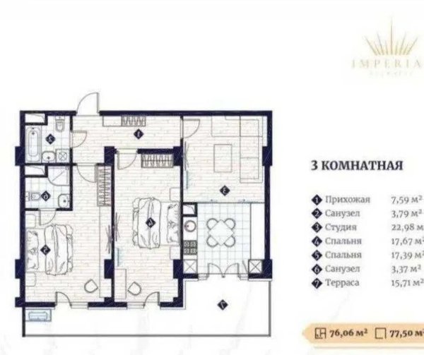 ЖК "Imperial Club City" срочно продается квартира ПРОДАЕТСЯ КВАРТИРА ЖК Imperial Club City Юнусабадский район Ориентир Ц-2 Алайский рынок Комнат 3 Этаж 8 Этажность дома 14 Общая площадь 78м2 C кадастром Состояние Коробка Для жителей бассейн Фитнес Прогулочная зона BBQ зона, открытый кинотеатр ЦЕНА 170000