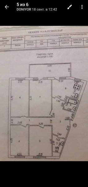 Юнусабад 11 - 4/5/9 95м² Юнусабад 11 - 4/5/9 Французская планировка Общая площадь 95м² Средний ремонт По линии метро Ориентир: Мегапланет,метро Юнусабад Цена: 122.000$ Тел. +998903554420 ¹
