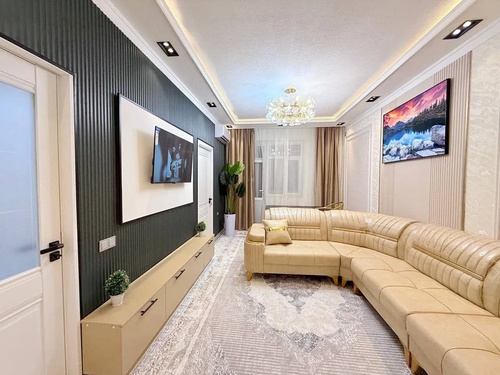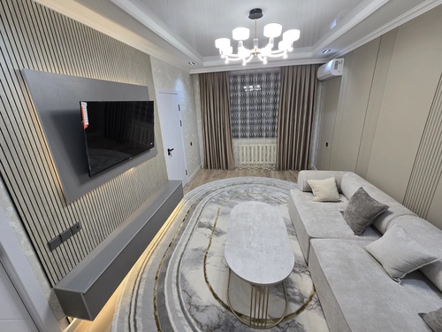 Sotiladi kvartira 2/43 Noviy remont, okna, dveri, lyustri. 1 gostevaya, spalnya, kuxnya, prixojaya, raxdlniya vanna, tualet. Chilonzor 19 kvartal.
