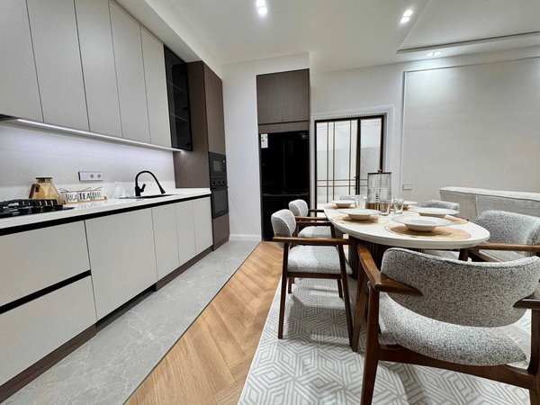 Yu ЖК Parisien 6комнатная 127м2 квартира 2 уровня с ремонтом 6 комнатная двухуровневая квартира в ЖК «Parisien» на улице Мукими предлагает просторное и комфортное жилье премиум-класса. Дом расположен в закрытом охраняемом дворе с продуманным ландшафтным дизайном, включающим зоны для отдыха и детских игр, летнюю кухню, беседки и декоративный фонтан с подсветкой, создающий уютную атмосферу. Квартира находится в отличном состоянии — выполнен качественный ремонт с использованием современных материалов. Каждый уровень оборудован отдельной входной дверью с умной системой контроля доступа. Планировка функциональна: на первом уровне (8 этаж) расположены кухня-гостиная открытого формата и две спальни. Аналогичная планировка повторяется на втором уровне (9 этаж - мансарда), что обеспечивает приватность и удобство для большой семьи или гостей. Вся мебель и бытовая техника остаются новому владельцу, включая встроенную кухню, климатическое оборудование и системы хранения. Приятным бонусом новому владельцу будет персональное парковочное место в многоуровневом паркинге. Жилой комплекс «Parisien» отличается развитой инфраструктурой: в шаговой доступности супермаркеты, кафе, фитнес-центр и детский сад. Хорошая транспортная доступность обеспечивается близостью основных магистралей и остановок общественного транспорта. Район сочетает спокойную жилую среду с удобной логистикой до делового центра города. Объект подходит для постоянного проживания семьи или в качестве респектабельного варианта для инвестиций. Возможен прямой торг с собственником для заинтересованных покупателей.