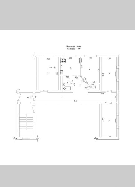 Корасув-6 safia makro 3/2/9 №288 Ажойиб локация! Шинам, тоза ва файзли Хонадон! Албатта хонадон харид килиш ниятида булсангиз биринчи навбатда шу сифатларга ахамият бериши лозим! Бу вариантимиз айнан манашу сифатларга эга! Яъни шинам локация деганда, транспорт катнови, мактаб, бог'ча, супермаркет, кафе, бозор якинида булгани учун лойик деб билдик, ва албатта расимлар хакикий)) ! Хонадон Уйнинг четида (торцевой) ЭМАС 2 та балкон 2*6 ва 2*3 Хонадон мумий майдони 85 кв.м + омборхона камида 3 кв.м Булинган режа (Разделка) Айрим мебел ва техникалар колади "Шунингдек хонадонларни сотиб олиш сотиш ижарага бериш ва олишда фойдали ёрдам берамиз"