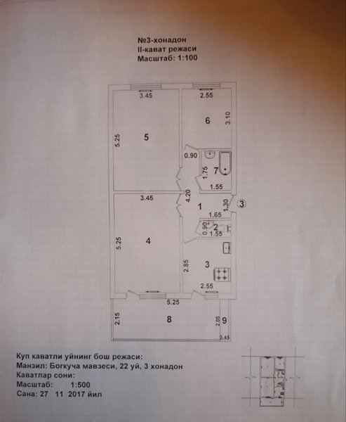 Гунча Продаётса 3/2/4 Метро тинчлик 98кв.м Срочна #Гунча #3комнатная 3/2/4 панель ком раздел с/уз раздел меб/тех частич рем сред балк 2*6 торец общ пл 98кв.м орр метро поликлиника Цена 79.000 торг Умар+998959913366