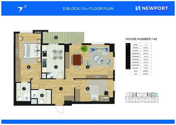 2-х комнатная евродвушка в ЖК New Port. Вид во двор. Район Яккасарай Новостройка ЖК New Port Квартира 2/17/20 Каркасно-монолитный дом Общая площадь 49.46м2 Жилая площадь 44.21 Бизнес класс Кадастр есть Ор.Аэропорт Цена 77 3665544