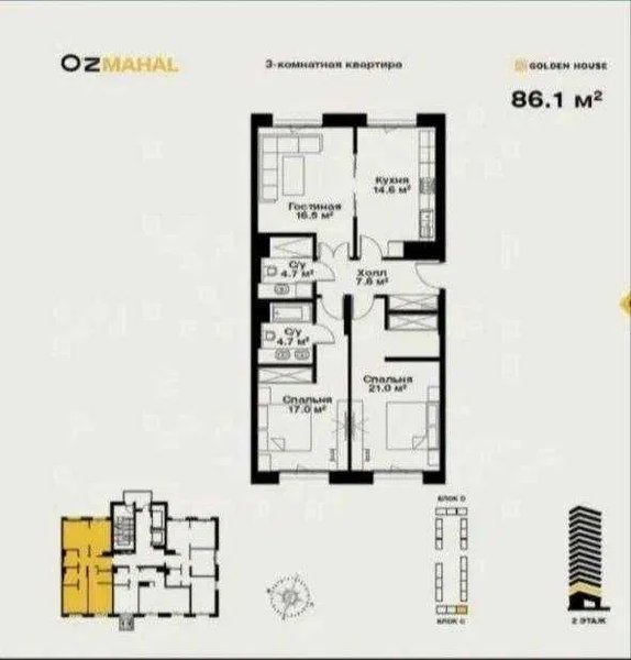 ЖК O'z Mahal , 3/11/14, Евроремонт с обстановкой Новостройка * ЖК O'z Mahal ул. Новомосковская, ор-р Дархан-3 Бизнес класс от Голден Хаус Комнат: 3 Этаж: 11 Этажность: 14 Площадь: 57 кв.м Состояние Новый Дизайнерский ремонт С Мебелью и Техникой Закрытый зеленый двор, подземный паркинг, 2 лифта Кадастр есть 3