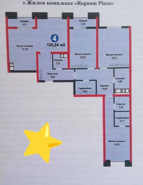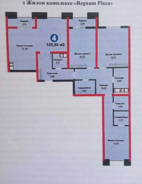 ЖК Regnum Plaza 4х комнатная 125,24м2‼️ Мирзоулугбекский Продаётся квартира ЖК Regnum Plaza от застройщика Мурад Билдинг Мирзо-Улугбекский район Комнат: 4 Этаж: 3 Этажность: 15 Площадь : 125.24кв Состояние: Коробка, White Box Вид на двор 3 санузел 2 Гардеробные Первая очередь Цена: 265.000у.е. +998 93 888 60 99