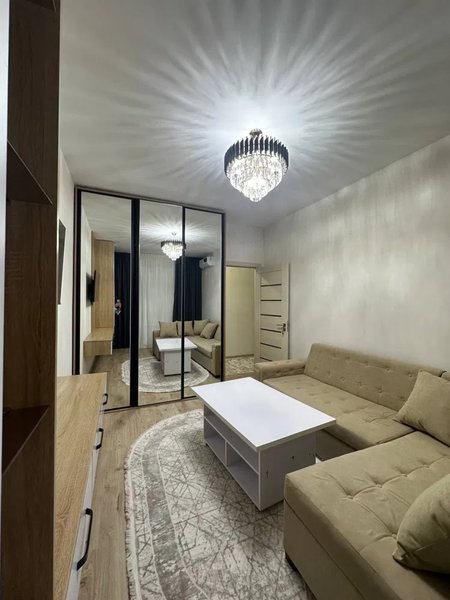 Продаю 1-комнатную квартиру Продается 1-комнатная квартира, полностью укомплектованная, можно заходить и жить. Ремонт, техника, мебель все новое. На фото все видно (фото реальные) , могу скинуть видео если нужно.Рядом метро Куйлюк (спокойным шагом минут 5),магазины, рынок. Долгов никаких нет, я собственник. Кадастр есть. Идеальный вариант для молодых семей, можно сдать в аренду.Реальному покупателю торг.