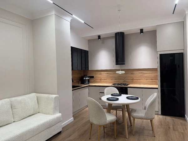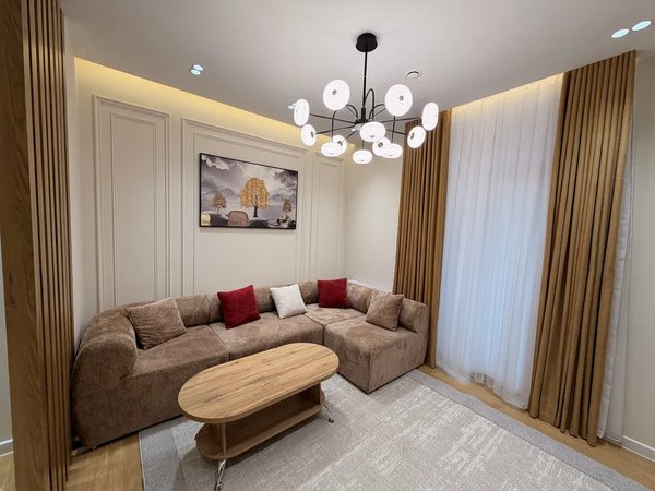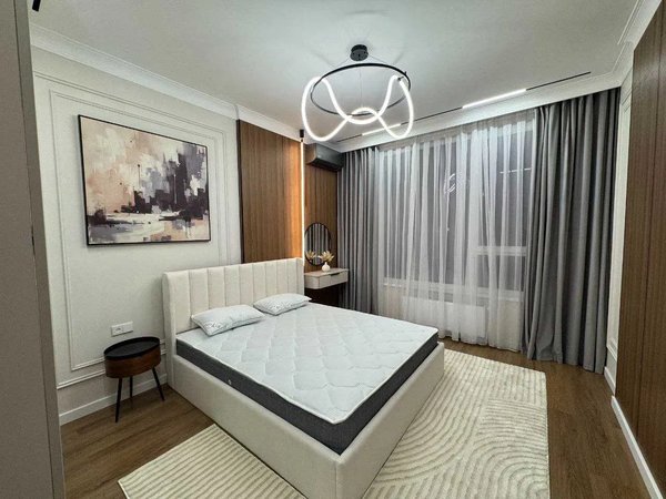 2-комнатная квартира NRG Jomiy Качественный ремонт, грамотный дизайн, умный свет. Балкон имеется. Квартира полностью меблирована, техника Bosch-Avalon и LG. Охрана, детская площадка, гостиная зона, лифт, интернет, инфраструктура рядом. Документы оформлены.